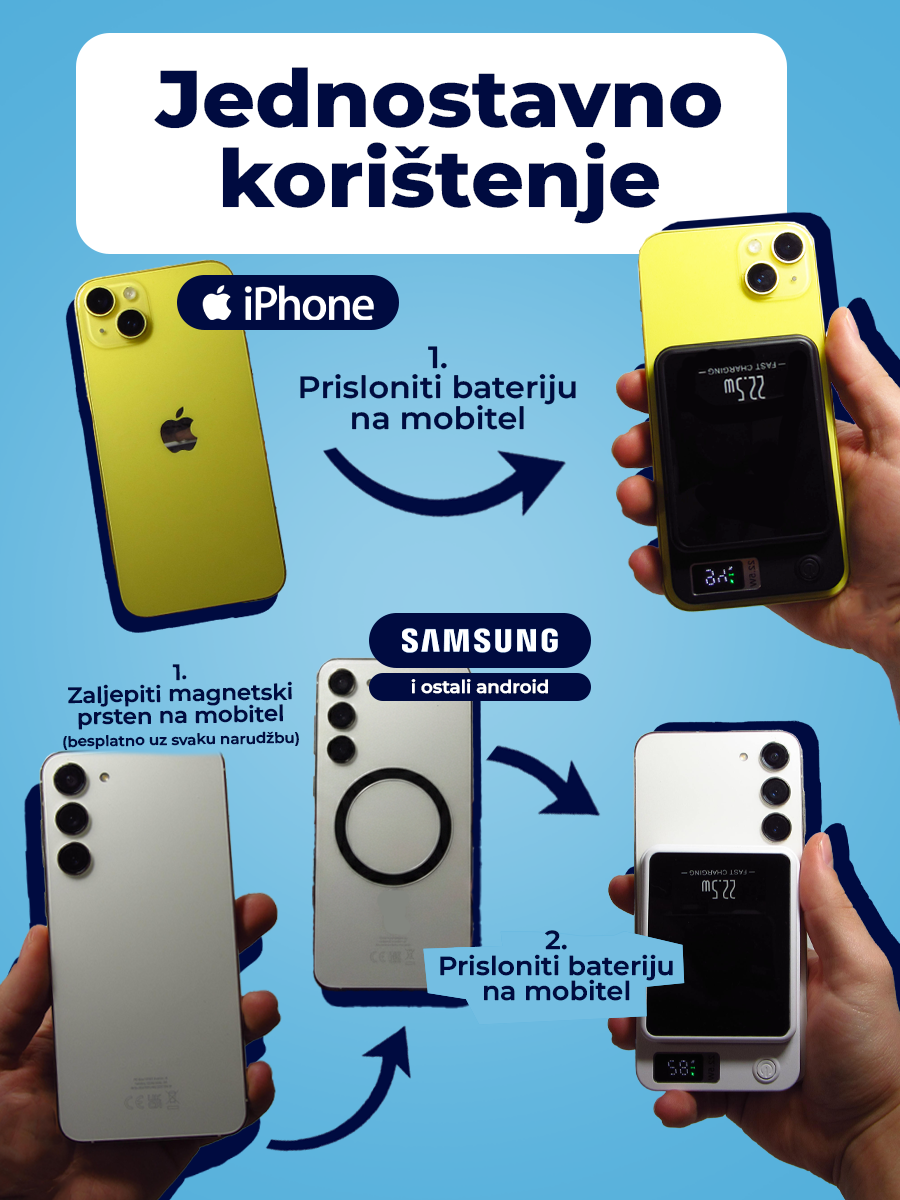 💡 Ključne prednosti proizvoda Magnetsko bežično punjenje – inovativni magnetski sustav osigurava savršeno poravnanje s vašim uređajem, bez dodatnih kablova. Samo prislonite i počnite puniti, bez gubitka energije i bez frustrirajućih kabelskih komplikacija.
